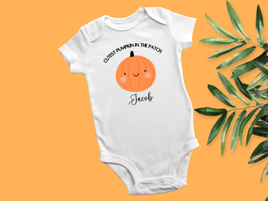Cutest Pumpkin In The Patch Personalised Name Baby Vest