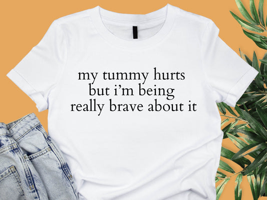 My Tummy Hurts But I’m Being Really Brave About It T-Shirt - Funny Sad Girl Tee | Comfort T-Shirt