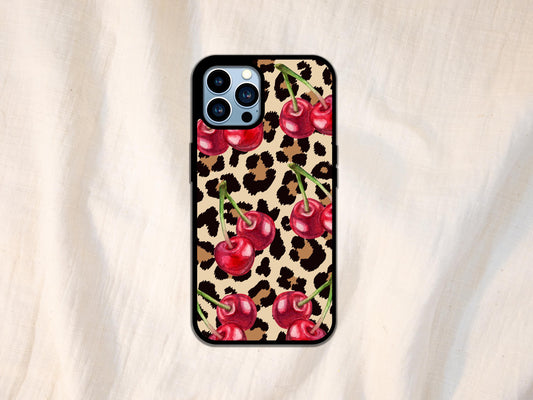 Leopard Cherry Phone Case, Cherry Leopard Cherries Animal Print, Cherry Phone Case For iPhone, Leopard Print Phone Plastic Case Cover Gift