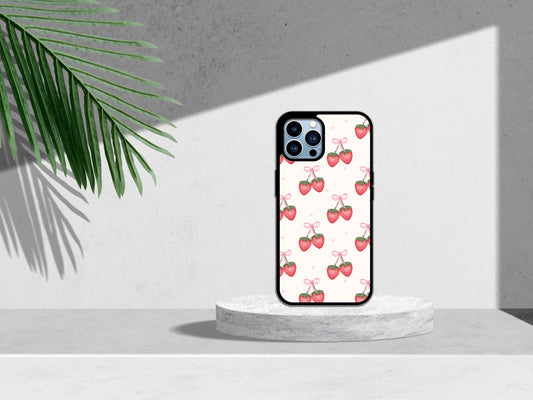 Strawberry Print Phone Case, Strawberries Pattern Plastic Rubber Phone Case For iPhone, Pink Strawberry Phone Cover, Cute Girly iPhone Cases
