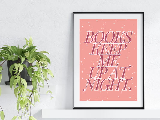 Books Keep Me Up All Night Print, Bookish Prints, Home Decor Reader Wall Art, Bookish Print, Bookish Wall Art Print, Bookish Quote Poster