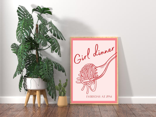 Girl Dinner Print, Girl Dinner Wall Art, Girl Dinner Poster, Girl Dinner Decor, Girly Pink Aesthetic, Bright Wall Art, Pink Kitchen Prints