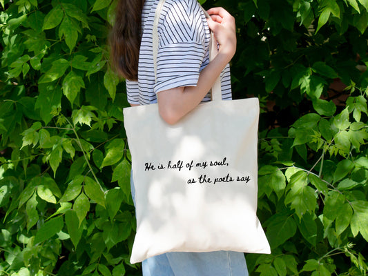 He Is Half Of My Soul Tote Bag – Song of Achilles Inspired Bookish Tote - Literary Gift for Readers & Mythology Lovers