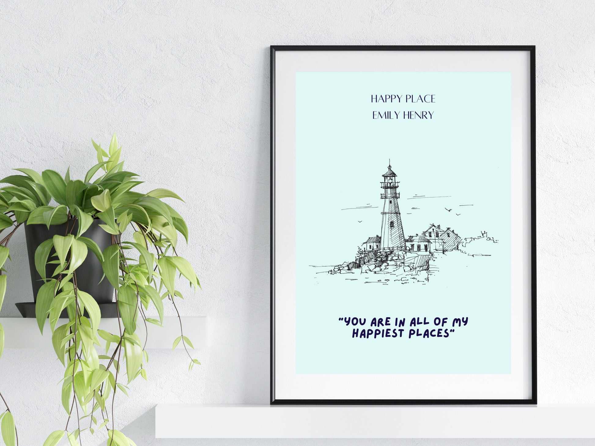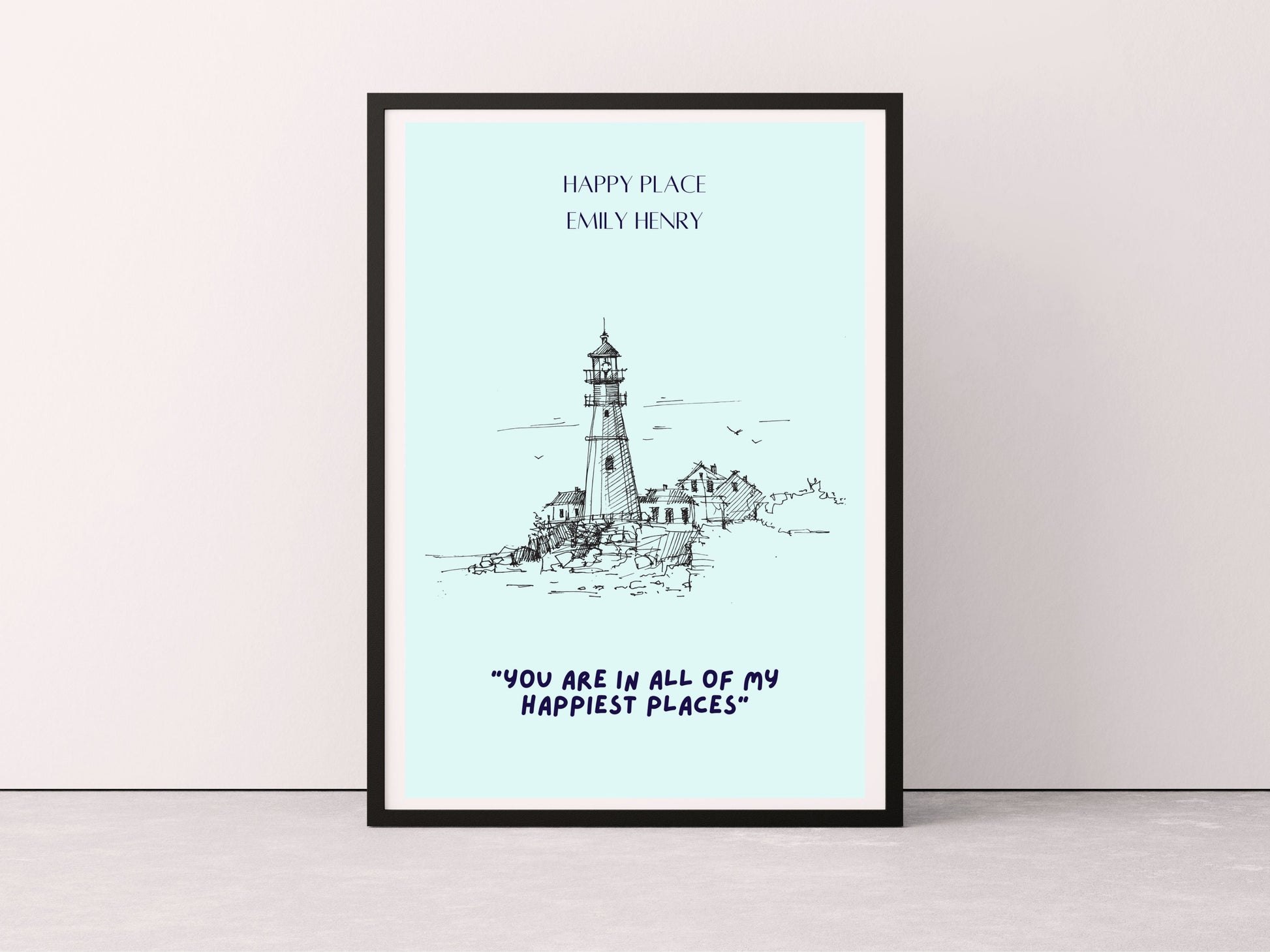 Emily Henry Happy Place Print, Happy Place Wall Art, Emily Henry Merch, People We Meet On Vacation, Bookish Prints, Bookish Wall Art