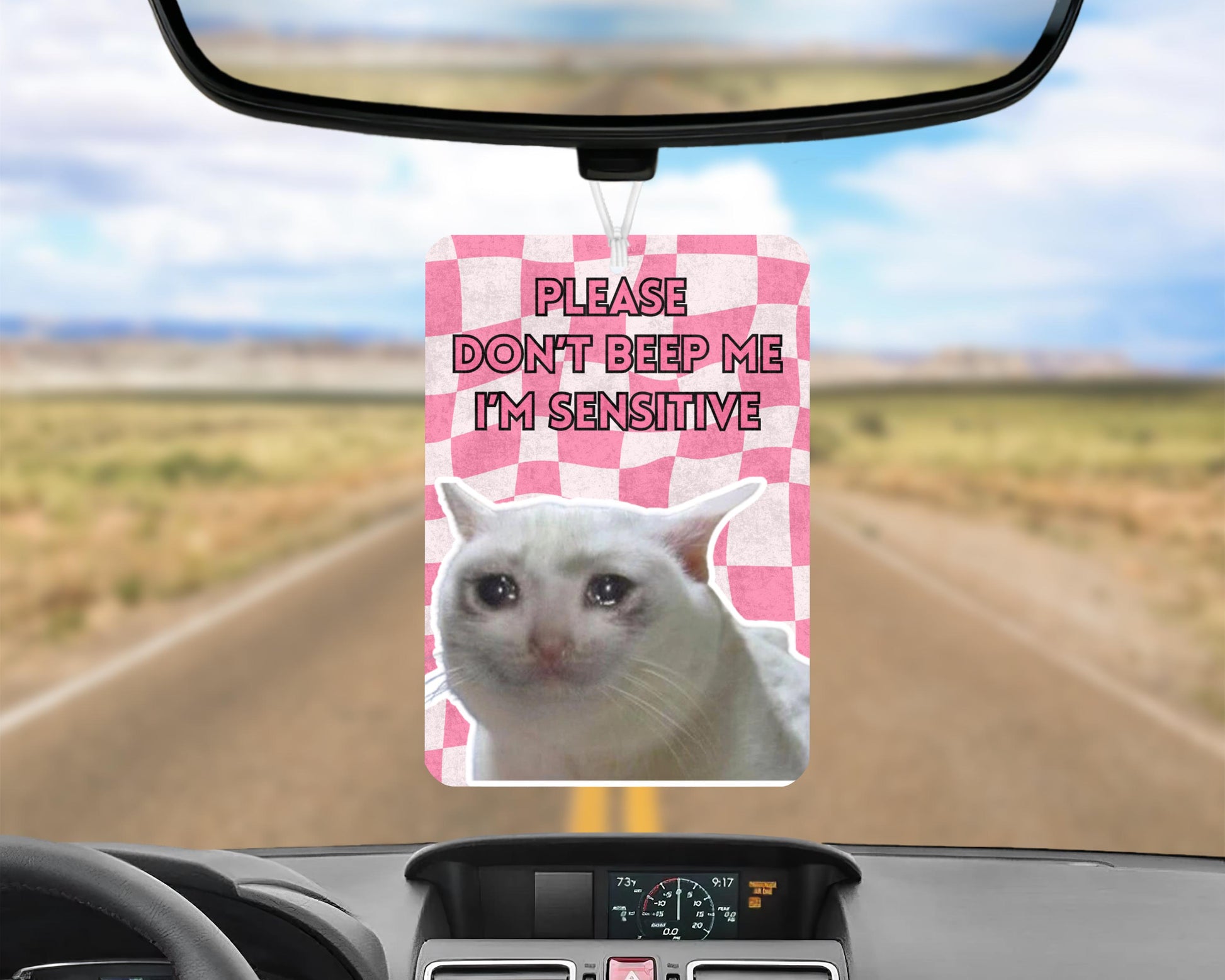 Please Don't Beep Me I'm Sensitive Crying Cat Meme Air Freshener, Funny Car Air Freshener, New Driver Funny Novelty Car Gift Accessories