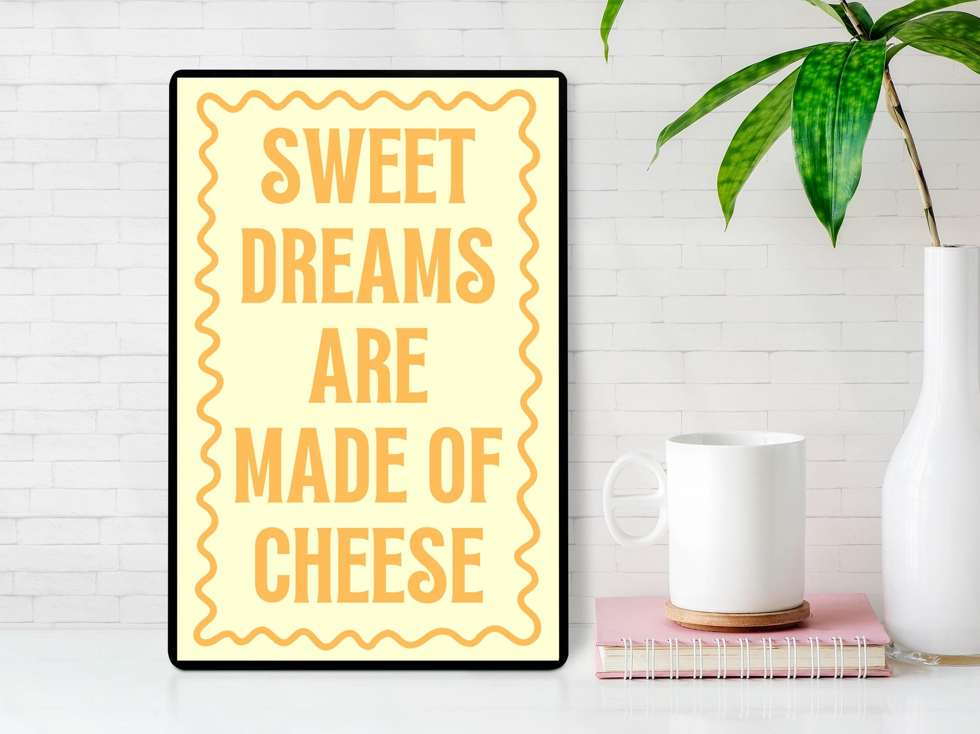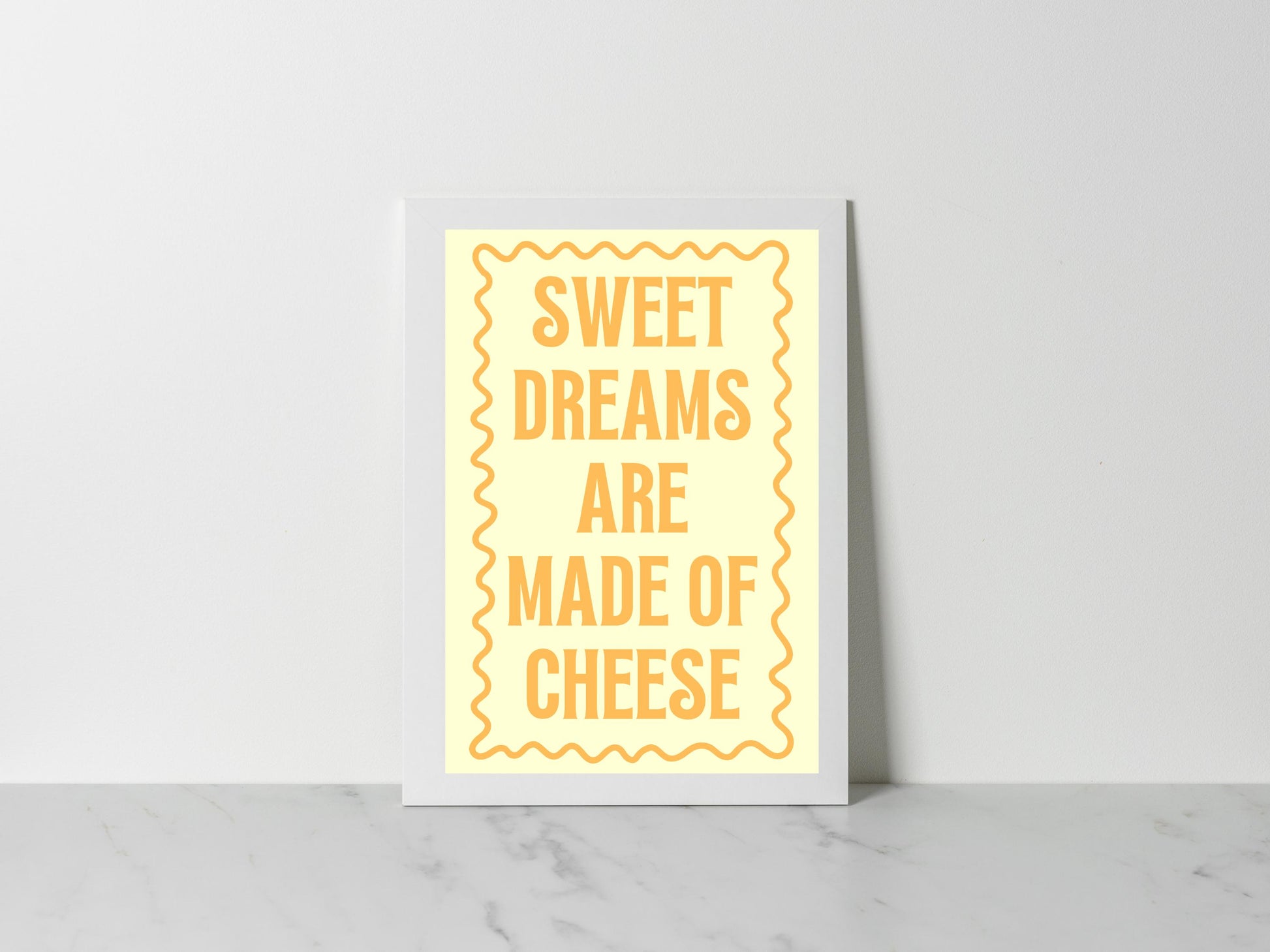 Sweet Dreams Are Made Of Cheese Kitchen Print, Kitchen Prints, Colourful Wall Prints, Bold Type Kitchen Prints, Food Typography Wall Art